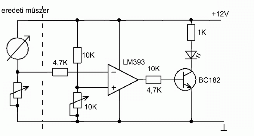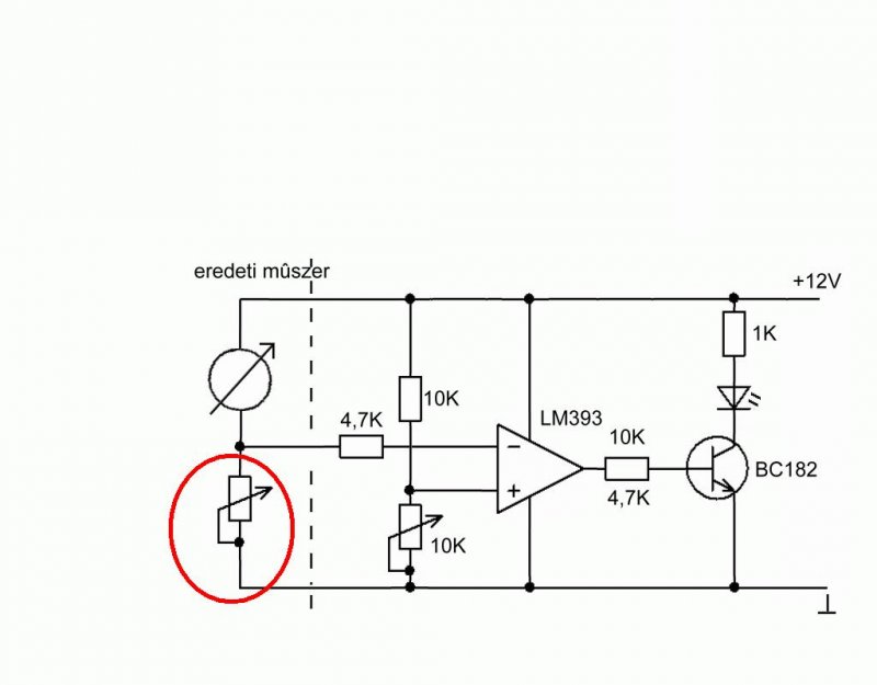 Az a 4k7-től 10k-ig az legyen 4k7. Értéke nem kritikus. De azt vedd figyelembe, hogy nem direkt 12V-ról szoktak menni a műszerek, hanem stabilizálva van számukra a feszültség. Legalábbis kadettben így van.