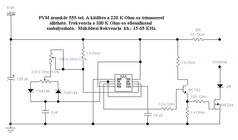 Teszek még egy PWM-et ide, mert átnéztem, és ez működik nálam most. (Az eltérés csak a FET vezérlő tranyó emitterében van)! Szia