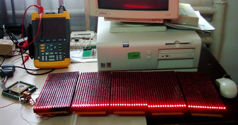A panel 32x80-as. Egy modul 32x16-os. A ledek egyébként 8x8-as foglalatban vannak.