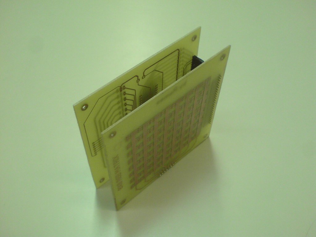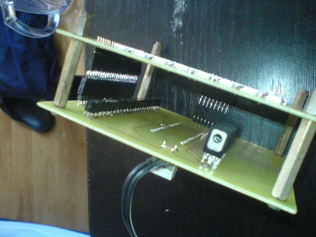 Az másfél napomba került Horváth tanár úrnál! Először beforrasztottam a LED-eket (384 forrpont), majd az átkötéseket, LED-enként 3 darab, ami 192 furatot és újabb 384 forrpontot (kétoldalas panel) jelent! Egy közelebbi kép a LED-es panelről... Miért van az, hogy az összes LED-es cuccommal ennyit szmötyizek?
