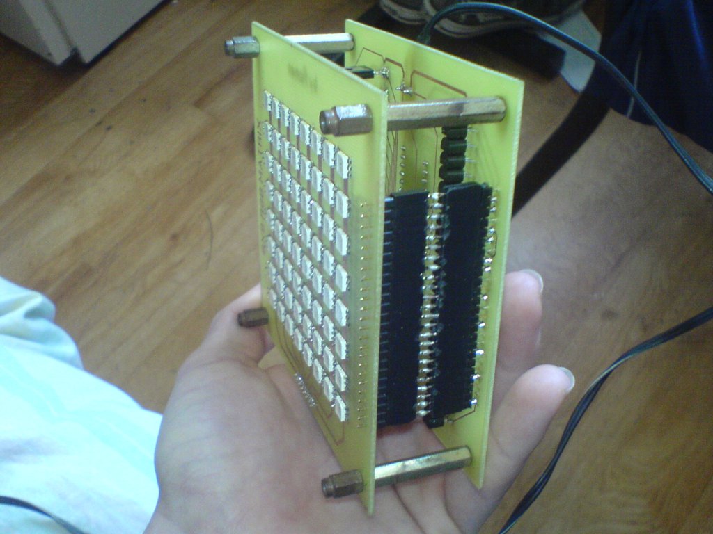 Csibi! :kalap: Nekem a 336 db led is sok volt, de 2560... :eek2: , meg 4 A... brutális :pias: Kössz mindenkinek a hozzászólást. Kérdésre: Plexit teszek majd elé, ha kész lesz. Most egy 18F2520-as PIC két portja kezeli a két panelen külön-külön a sorokat, az oszlopokat pedig shiftregiszterekkel és tranzisztorokkal kapcsolom, és igen,a háttérben a tápot is én csináltam... Üdv!
