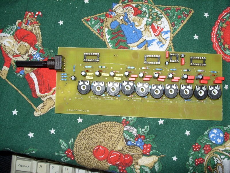 A spektrum analizátoromnak eddig a sávszürő és a vezérlő panelje van kész raktam fel képet!(A 10 db 47k-s poti azért ojan ferde némelyik, mert ilyen volt otthon és sokkal nagyobb mint amekkora kéne) üdv:tony994
