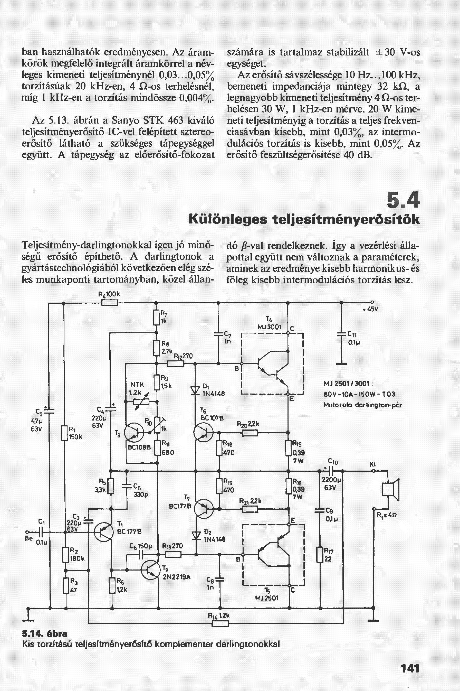 Van itt két + 60 voltra alkalmazható végfog , az eggyik az használható sima tranzisztor készlettel . Vagyis nemkell hozzá semmi különleges tranzisztor .A másik az szintén egy darlingtoros végfok , bár ez alapban csak + 45 voltal működik ezekkel a kapcsoláson feltüntetett tranzisztorokkal.De viszont ha keresel bele egy nagyobb feszültségű darlingtonpárt akkor használható akár 60 voltról is ekkor viszont a kimenő teljesítmény is nyagyobb lessz!Most hirtelen ezeket találtam de holnap fogok kutatni még több kapcsolást , amennyiben kell ?