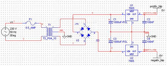 Kettő tápot kell építened, ezután összekötözgetheted őket és így lesz pozitív és negatív feszültséged is a kijelölt 0V-hoz képest.