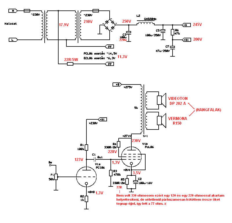 Mint az előbbi hozzászólásomban is írtam: Idézet: . Nos a mérések, s az elkészítéskor alkalmazott kismértékű eltérések dokumentálásakor felfedeztem egy nagy szarvashibát „hangfrekvenciás jellel történő debütálásakor még kellett egy kis "hibát" kijavítanom” (doksiban leírva). Az oszcilloszkópos méréseket a mellékelt képeken látni. A felső a bemenő jel, az alsó a hangfalra menő. A negatív szinuszhullámban látható torzulás adódhat a doksiban jelölt hibából is. Ezt már csak holnap javítom ki, s akkor mérek megint.A 10kHz-es mérésnél jól látni, hogy ott már a jelgenerátor lépcsőzetes szinuszt állít elő. Ennek ellenére az erősítő tökéletes interpolációt végez. A zenénél megy csak azt láthatjuk, hogy szól ![]() Semmi brumm! Ha nulla bemenő jelnél maximumra tekerem a hangerőt, akkor hallható valami kis cizergés. Ez szerintem valamilyen kapcsolóüzemű ketyere lehet, ami bezavar. Valószínűleg a bemeneti, hálózati tápszűréssel megszüntethető. Az egyenirányított táp atom stabil, semmi lüktetés. Mai zárszónak: Igazándiból nincs mit írnom. Most már a saját füleimmel hallhattam azt a gyönyört, amit nyújtani tud egy csöves erősítő. Még így, hibásan is elállt a szavam a hallatára. Főleg, hogy a hangerőt még csak 1/3-ig mertem feltekerni, nehogy a családom kiüldözzön otthonról Az 1 Watt! Igaz emberek?Kell belőle a sztereó változat! Csőfüggő lettem! Üdvözlettel: Action2K
