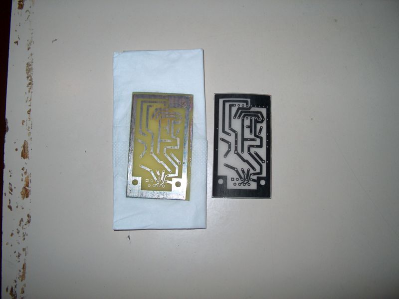 Na de az előhívás... Az volt a HQ-ban kapható NaOH-ra írva, hogy 3-5dl vízben oldjam fel(22g a cuccos)... Instant levitte asz összes lakkot 2 lögybölés alatt. (Pedig első próbálkozásra sikerült volna... ) Szóval a fél liter löttyöm harmadád átöntöttem egy másik üvegbe és visszahigítottam fél literesre. Hát gondolhatjátok, ez meg sem kezdte. Így maradt az a megoldás, hogy ezzel a higítottal kicsit visszahigítottam a töményt, belemártottam a NYÁKot néhány másodpercre, aztán gyorsan át a higítottabba. Ezt megismételtem párszor; 1 percen belül lehetett maratni.