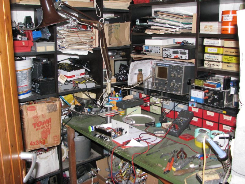 Valamikor régen én is a szobában dolgoztam.Az egyik sarokban volt egy két ajtós szekrény abban egy asztal ami 1,2 m X 0,6 m volt,alatta felette be volt polcozva ott voltak a műszerek és az alkatrészek. Ha az ajtó be volt csukva senki nem sejtette mi van mögötte. De azt idővel kinőttem.