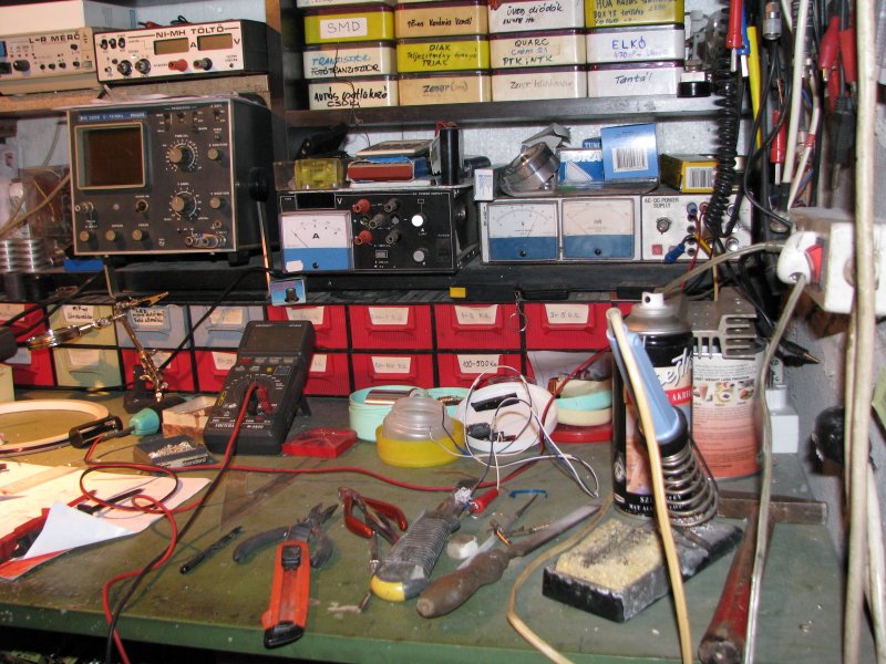 A hideg elől be kellett költöznöm a kazánházba bütykölni Egyébként nyáron a garázsban szoktam dolgozni ott van vagy 4m hosszú és 60cm széles asztalom de mindíg helyet kell csinálnom ha dolgozni akarok ,tudjuk hogy a "rendrakás a kisemberek mániája a zseni átlát a káoszon"