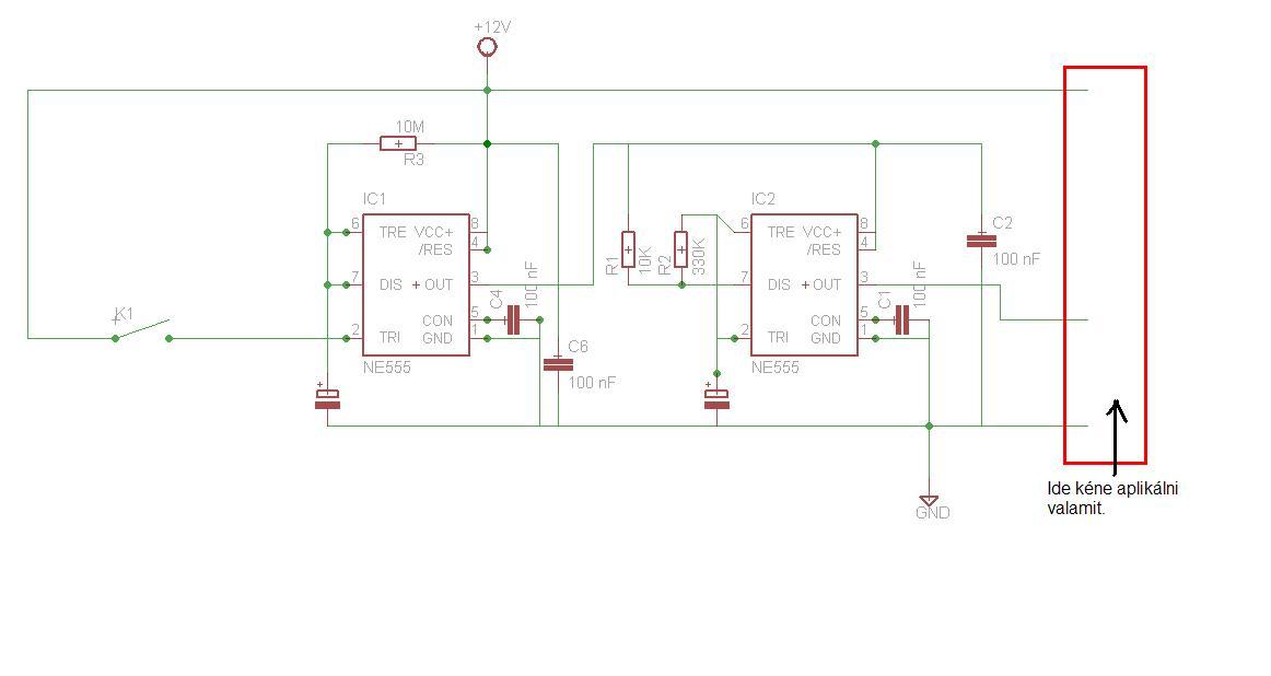 Szeretnék készíteni egy egyszerű kis riasztót. Alapötlet a következő: Ajtónyitásérzékelőként egy reed relét és egy mágnest használnék. Ha a mágnes eltávolodik a relétől akor a relében szakadás lesz, és ennek hatására kéne az hogy kb 2 percig szóljon egy sziréna. Úgy gondoltam, hogy 2db 555ös ICvel oldanám meg, egyik lenne a monostabil, ez adná a 2perces jelet, egy másik pedig az astabil, ez lenne a felelős azért, hogy a szirénát kb másodpercenként ki-be kapcsolgassa hogy ne folyamatos legyen a hang. Következők lennének a kérdéseim: -az 555öket tudom, hogy hogyan kössem be, és hogy milyen kondenzárot és ellenállás értékekkel, viszont azt nem tudom, hogy egy kapcsolásba feltétlenül szükséges az 555 mellé az a kondenzátor ami egyszerűen csak a Vcc-t és a gnd-t köti ösze? -A reed relénél hogy tudnám megoldani azt, hogy ha szakad akkor jelet küldjön a monostabil 555-nek? TTL kapuval gondoltam megoldani, de az csak 5 voltot bír, viszont a sziréna 12Voltról menne. Ezt hogy lehetne megoldani? -Végül a szirénát hogyan kössem az astabil 555höz? Kössem a tápját közvetlenül az ic kimenetére, vagy esetleg valamilyen tranzisztoros kapcsolással lenne jobb? Előre is köszi a válaszokat. Idézet: „egy kapcsolásba feltétlenül szükséges az 555 mellé az a kondenzátor ami egyszerűen csak a Vcc-t és a gnd-t köti ösze?” Igen, legalábbis célszerű. Idézet: „A reed relénél hogy tudnám megoldani azt, hogy ha szakad akkor jelet küldjön a monostabil 555-nek? TTL kapuval gondoltam megoldani, de az csak 5 voltot bír, viszont a sziréna 12Voltról menne. Ezt hogy lehetne megoldani?” Használj ellentétesen működő REED relét. (Ami akkor zár, amikor a mágnes eltávolodik.) Sokkal egyszerűbb! Idézet: „Végül a szirénát hogyan kössem az astabil 555höz? Kössem a tápját közvetlenül az ic kimenetére, vagy esetleg valamilyen tranzisztoros kapcsolással lenne jobb?” Az alapvetően a sziréna áramfelvételétől függ, de én mindenképpen egy tranzisztoros kicsatolást tennék oda.