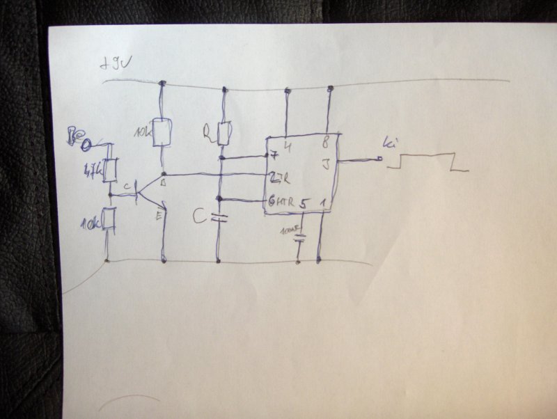 2. a monostabil áramkört módosítani kell úgy, hogy a reset (4) lábat a táp (8) helyett a triggerre (2) kötöd (így menet közben ha kap egy újabb jelet, akkor újrakezdi a számlálást, ahogy szeretnéd)