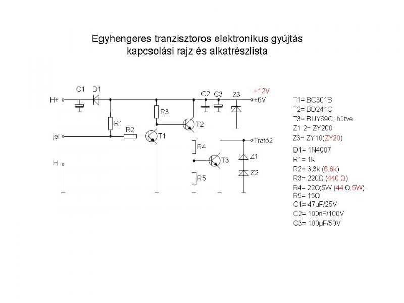 itt a fórumban a 4. oldalon található hal vezérelt gyújtást ajánlom mindenkinek. olcsó könnyű és megbízható! sokszor egyszerűbb megépíteni mint a gyárival szenvedni. én simán az aksira szoktam rákötni.. általában 1.2A a fogyasztása de ez a transzformátortól függ. jeladóként vagy egy csavart tekerek a lendkerékbe vagy egy lézer olvasó fejéből kiszedett mágnesét ragasztom fel fémragasztóval. egy hiba van a kapcsolásba hogy túl nagy a gate áram!! az 1k ellenállást 20k ra kell növeli (nekem pár hét után ment tönkre a fet) a kimeneten szerintem a 2db 200v os z diódát nélkülözni lehet! szkópal mérve 300v fölé sose ment a feszkó irf840 meg 500v! és a hal utáni 12v ost sem szoktam beleépíteni. 1 gondom van hogy nálam nagyon melegszik a fet! pedig csak 1.2A folyik rajta. ez irf840 de próbáltam már buz91 el is de az még jobban melegszik pedig adatlapon jobbak a tulajdonságai... ebben tudna nekem valaki segíteni hogy ne keljen hatalmas borda rá?? mert nekem már fogalmam sincs mi az oka vagy hogy hogy lehetne csökkenteni a borda méretét.