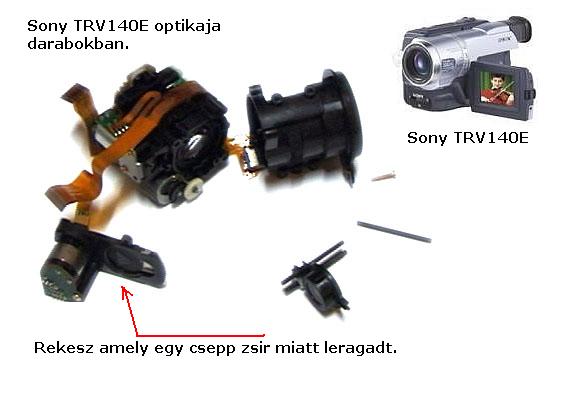 Ugyan is, vagy ket evvel ezelott valaki elesett a mororbiciklivel es oda verte a kamerat. A napokben kerult a kezembe es nagy odaadassal szejel is szedtem. Legyen ami lesz gondoltam magamban. Mind irtam volt, hogy lejatszott de felvetelt vele nem lehetett kesziteni. Minden reszet aprolekosan atneztem. Alkatreszi hibat vizualisan nem talaltam. A kepernyon megjelent Error kodbol kovetkeztetve (61:10) meg is kaptam a neten, hogy optikai hiba. Leszedtem a CCD-et annak semmi baja nem volt a fenyt erzekelte, elejebe egy optikat rakva a kep is megjelent a kepernyon. Beleneztem az objektivbe es latom, hogy nem latok rajta keresztul_a kamera be volt kapcsolva_ilyenkor illik a rekesznek megnyilnia. Nagy korultekintessel a rekesz modult leszedem es zarva volt a rekesz. A rekeszt ezeknel a kameraknal a Sony egyszeruen oldotta meg. Ket egymasba csuszo kozepen ekkivagassal biro tizedmillimeteres lemezpar csuszik egymason, amelyet egy kis koralaku elektromagnes mozgat. Probaltam mozgatni a lemezeket de nem csuszott egymason inkabb meturodott. Kulsoleg nem latszott semmi sem. Akkor hirtelen arra gondoltam, hogy a leeses miatt az elektromagnes megszorult. Aludtam ra egyet. Masnap csak nem hagyott nyugodni a dolod es megegyszer szejelszedtem. Csak ugy kivancsisagbol a felso lemezt egy csipesszel megemeltem es egybol a leragadas oka meglatszott. Elmeletem szerint, amikor a kamera leesett akor a zoom tengelyrol egy kismennyisegu sziradek kerult a rekeszlemezekre. Ez szepen a ket lemez koze kerult es azokat osszeragasztotta. Kivulrol nem latszott semmi sem mert a hosszu raktarozasi ido alatt a feluletrol alparolgott, de a lemezek kozul nem. Azonnal felszedtem az egyik lemezt (felig) es szesszel letorolte a feluleteteket. Visza helyezve a lemezt a rekeszt szepen finoman lehetett mozgatni az elektromagnes pillango szarnyaival. Oszeszereltem a kamerat es egyol mukodott nagy megelegedesemre. Termeszetesen egy szakszervizben az egesz muvelet egy felora lett volna es nem harom nap. Nem beszelve a javitasi kiadasrol! A beszurt kepen latszik a szetszedett optika. Azert nem kell ennyire szetszedni. Harom csavar megbontasaval a rekesz modul kiszedheto!!
