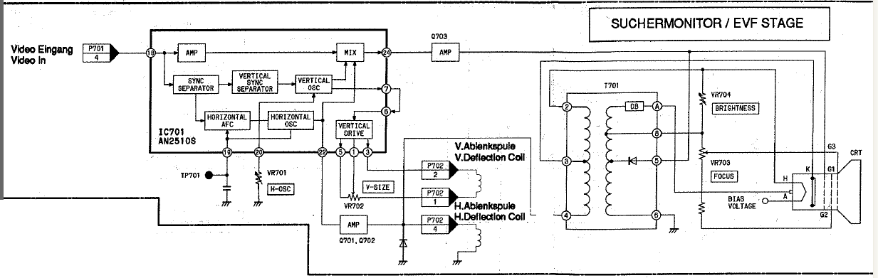 Az az a nezoke elektronikat tanulmanyoztam at egy kicsit. Egyszer a nezoket el akarom inditani kulon, hogy lassam mukodik e. Egy fel napom rea ment amig kibogoztam a panelon a fobb csatlakozasi pontok helyet. Ez egy kulonalo egyseg amely egy soklabu csatlakozoval csatlakozik a kamera tobbi reszehez. Kikerulve a csatlakozot (erossen pinduri) egy kulso tappal es video jellel el lehet inditani. Hasonlit a rajza a tiedre csak ebben nincs a C556-os IC hanem modon aktivalodik. Lasd a kepet. Esetleg a rajz alapjan a te nezokedet is eltudod inditani. Keruld ki a C556-os Ic-et (ugy ertettem, hogy le van egve) es a rajz alapjan nezd neg, hogy az AN2516S Ic melyik labai kell kapjak az 5 voltot. Athidalod a megfelelo labakat es a kamera procijatol fuggetlenul mukodo kepesse lehet tenni. Amennyiben a kamera tobbi resze mukodik a kep lathato kell legyen a nezokeben amennyiben felvetelre kapcsolod.