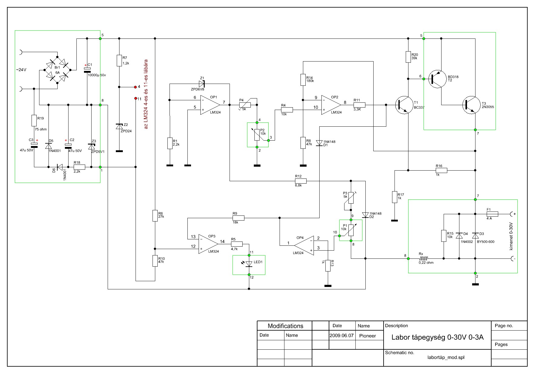 Magadnak kell eldönteni, jó-e neked így ahogy van. Az árambeállítás számomra elfogadhatatlan ebben. Nincs áramgenerátoros üzemmódja. A javított rajz, megoldja a problémát. Én vagy a javított változatot javaslom, vagy bármelyik másik, bevált kapcsolást. Egészen más! A mellékleteden lévő "tele-fóliás" nyák, eléggé vitatható eredményekre szokott vezetni. Ettől függetlenül, van aki ezt sztárolja, van aki erősen vitatja ennek létjogosultságát (én az utóbbiak közé tartozom, azaz csak kivételes esetben, jó indokok alapján használom). Az ilyen kialakítás melegágya a gerjedéseknek (mégha ez egy tápegységnél nem is túl valószínű), és e mellett nehezíti az áttekintést, bonyolítja a javításokat, és egy csomó hibalehetőséget is előre vetít. Akotó
