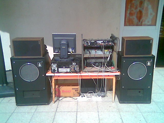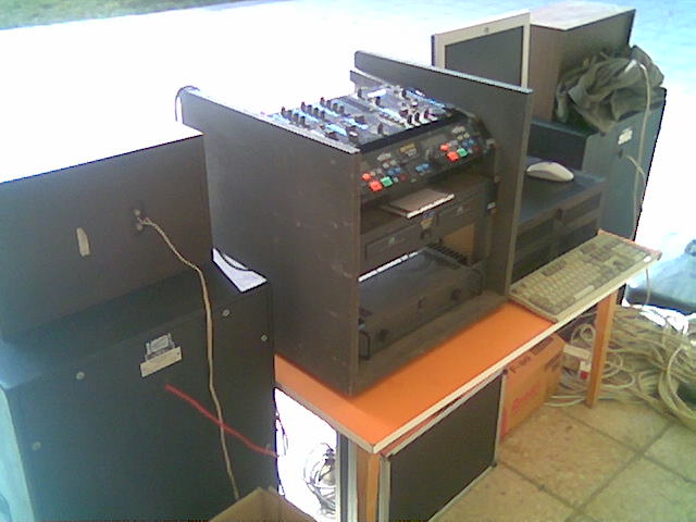 Ma délelőtt egy óvodai gyereknapon hangosítottam. Szabadtéren, kint az udvaron. Már sok-sok éve dolgozom nekik mindenféle rendezvényeken. A hely kb 250-300 négyzetméteres. Szolid zene, és időnként "hangosbemondó" kellett most. Illetve volt egy tánccsoport is, egy bemutatóval. no akkor csutkán ment minden. Az a minden egy 2*100-as Castone-al meghajtott két Vermona Regent 150 láda és egy pár Videoton a középmagasoknak. A meghajtást Gemini dupla CD és keverő, illetve egy ipari PC végezte. A PC-ben egy Sound Blaster AWE32 hangkártya van. Az egész, manapság már lassacskán egy retro tucc lesz, de én nagyon szeretem ezt az összeállítást. Könnyen mobilizálható ilyen kis rendezvényekre, s ami nem utolsó, szép hangja van. Bocsi, a képek telóval készültek, de a lényeg látszik. Ott jutott már eszembe, hogy csináljak képeket, s bemutassam, hogy milyen kis cucc is elég tud lenni szabadtéren.