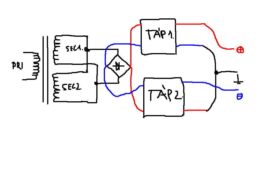 „De mondjuk párhuzamosíthatod is a szekundereket, egy nagy diódahíd és a két táp egyről menne.”