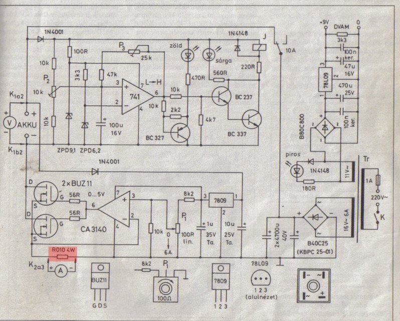 RT évkönyv 1997 139.-oldal. "Automata töltő 12v-os gépkocsi akkuhoz" címmel
