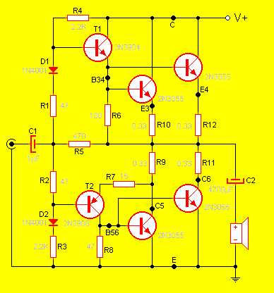 Tud valaki ilyen mini megafon kapcsolást mint ez, csak tranzisztorokkal, aminek 9 Voltot kell adni? Egyébként nagyon jól működik a kapcsolás csak szeretnék tranzisztorosat is építeni. A válaszokat előre is köszönöm.
