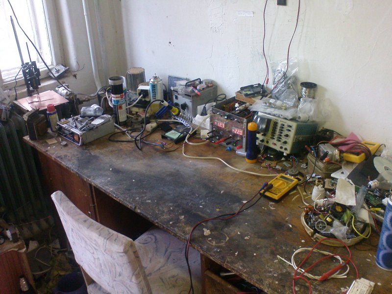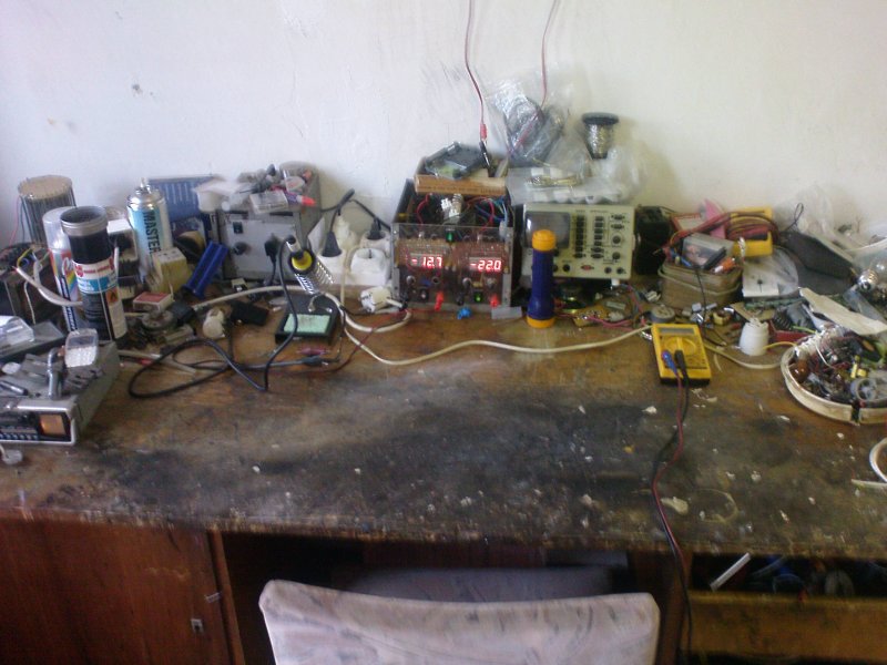 Nekem ez már rendnek számít, mert le tudok ülni az asztal mellé. Még csinálni kellene polcokat, vagy valamit, ahová az asztal két széléről a bontott cuccokat el tudnám pakolni. Csak egyenlőre egy nem használt hűtő foglalja az értékes helyet és nem tudok addig kibontakozni. Amúgy eltaláltad, balkezes vagyok.