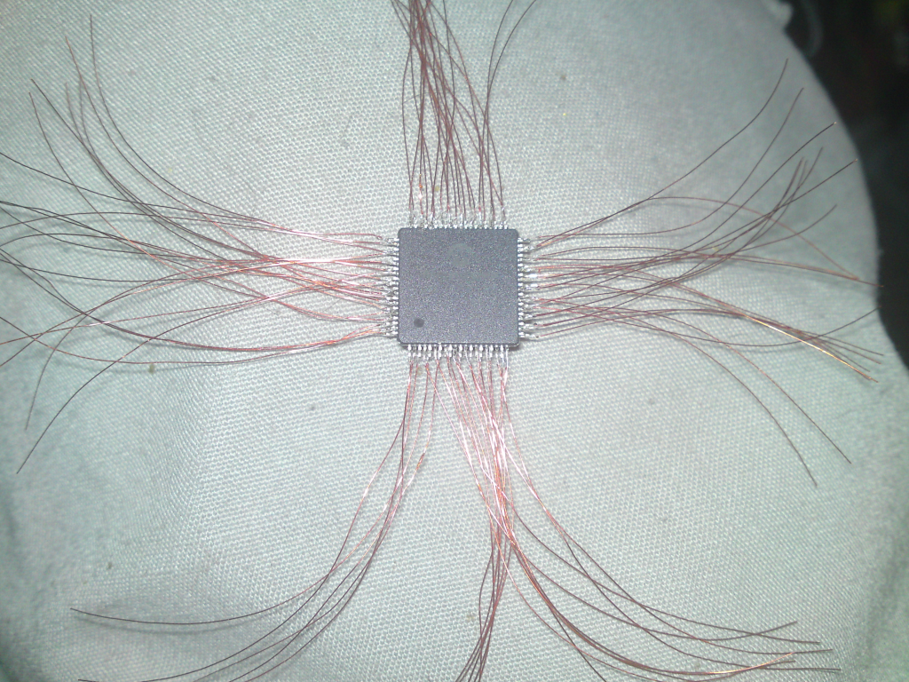 Úgy, ahogy Zoly15 mondja! Én is ilyen eljárással csináltam az átkötéseket a nagy panelon, csak nem ~20 darabbal, hanem ~500 darabbal, és én egy riasztókábel gnd erét használtam, jobb vele bánni. Ezeknek az átkötéseknek viszont elég 0.5mm-es fúróval lyukasztani.