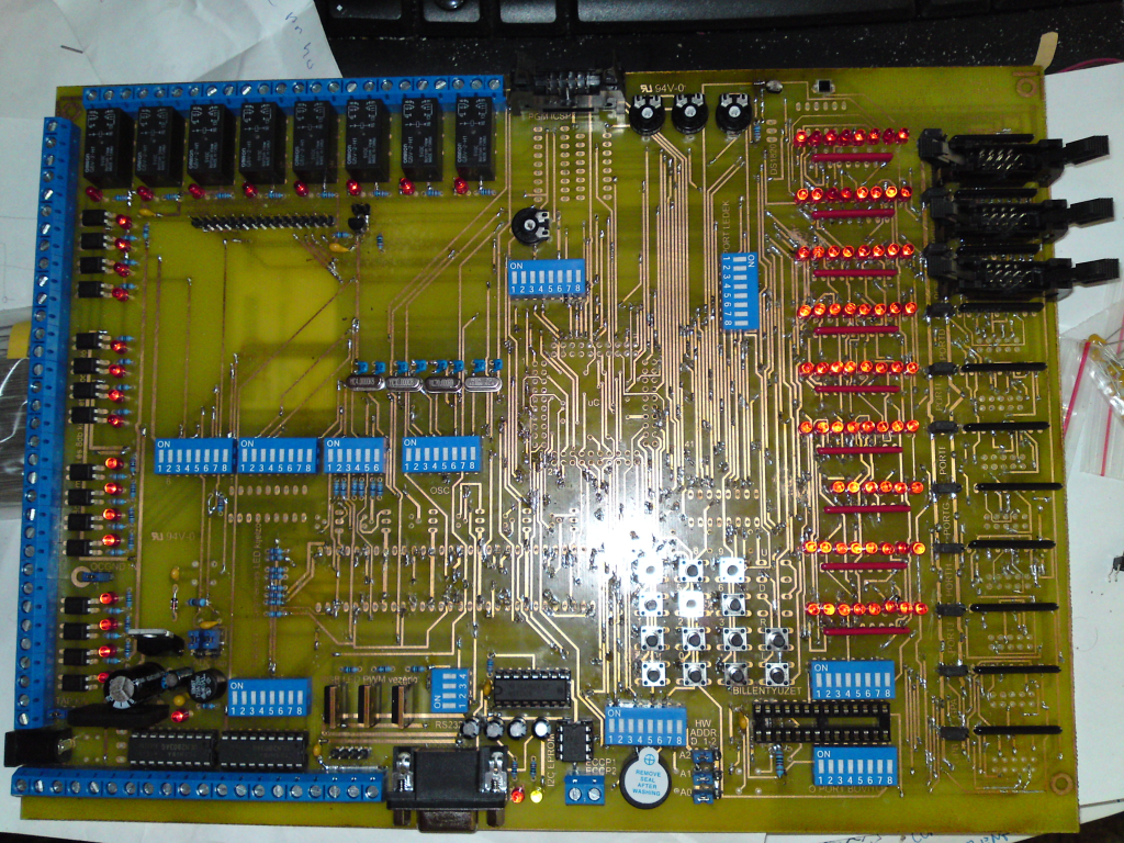 Táp: külön panel, de semmi extra, áramgenerátor és 7805 van rajta. Időzítő: saját fejlesztés: smd AVR atmega8, 16szegmenses kijelző, egyetlen nyomógomb. Képek most nem lesznek, mert kölcsön van adva.