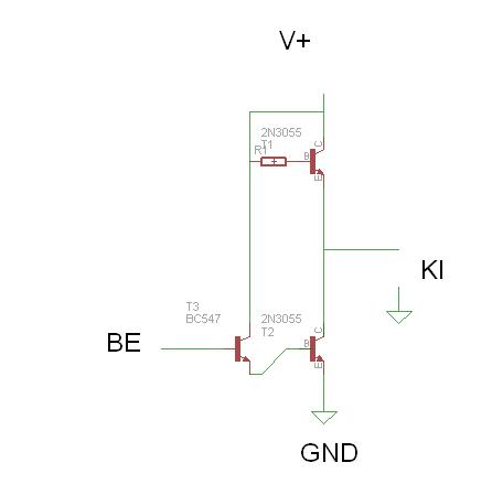 Sziasztok.Ez igy jo lenne? 2N3055+ xOhmos bazis ellenallassal kinyitni annyira hogy yA engedjen at es ez lenne a ellenallas helyett?