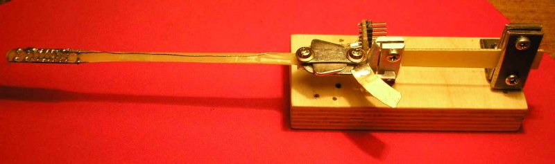 Egy nyákrugó/kar/mágnes/rögzitő elemeiről készitettem felvételeket. A nyákrugó méretei itt is megegyeznek a leírt értékekkel. A kar hossza 145mm, együtt van rögzítve a mágnessel. A lengető mágnes egy régi (WD340) winchesterből lett kitermelve. A nyákrugó helyére acélrugó is szerelhető. A levezető 0.1mm-es CuZ (10ér), sodrata a kicsatlakozóig szintén követhető. Az összeállítás képein jól látható minden részegység. Szia.