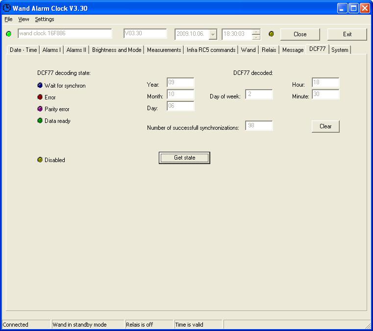 Lehet, hogy a táp szűrése volt a kritikus hiba és közelebb lehet majd hozni az órához. Kipróbáltam már mindent, azért növeltem a távolságot 2m-re. Most 30 perc alatt 28 -szor szinkronizált, de este mértem (kisebbek a zavarok). Szűrés nélkül egyetlen bit vétele sem jött össze, nem volt 100-200ms impulzus a jelben, csak 10 - 20 ms - osak. Az antennát München felé kell irányítani. Ez egy kicsit megnehezíti az órába való beépítést. Szia