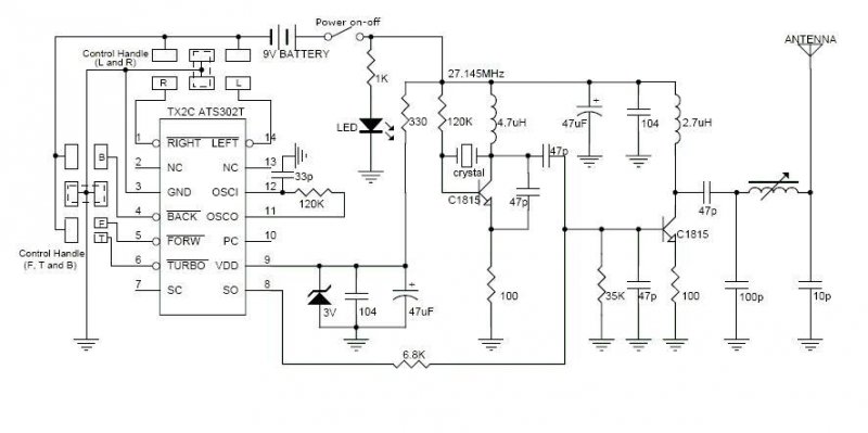 RF erősítőkben vagy RC távirányítókban jártas kollégáktól kérnék némi segítséget. Van egy távirányítós kisautóból kiszerelt vevőm és hozzá az adó elektronika. Az adó részének megnöveltem a tápfeszét 3V-ról 9V-ra, a kapcsolás a melléklet szerinti csak nem 27 hanem 40 Mhz-en működik, és az a helyzet hogy a hatótáv nemhogy nőtt volna hanem még rövidült. Kérdésem hogy melyik alkatrészen kellene változtatni hogy a hatótáv vagyis a teljesítmény növekedjen. Gyakorlatilag csak a zénert és a hozzá tarozó kondit raktam bele az eredeti adóba, illetve a mindkét tranzisztor emittere és test közötti ellenállásokat tettem bele mert ott csak a baloldalin volt egy 47Ohmos eredetileg. Remélem tud vki nyújtani némi segítséget. Előre is köszönöm!
