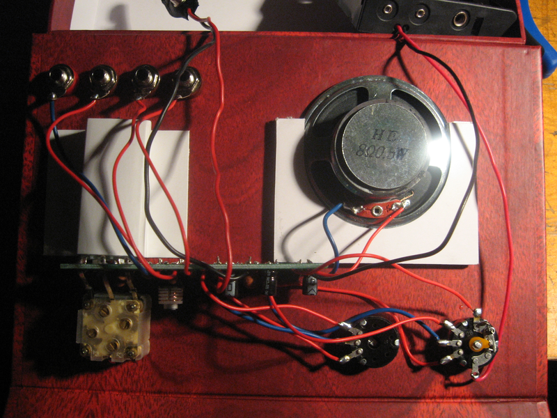 ![]() 15V-tal már kiválóan működik, ami a 9V-os elem és a 4db ceruzaelem soros kapcsolásából adódik össze. A 6V adja a fűtést és táplálja a félvezetős HF áramköröket (2db BC547 és LM386). Egyszerű, indirekt fűtésű pentódácska, amit audiofil csöves erősítőkben is szívesen használnak előerősítőnek, legalábbis a Google találatok erről is tanúskodnak.