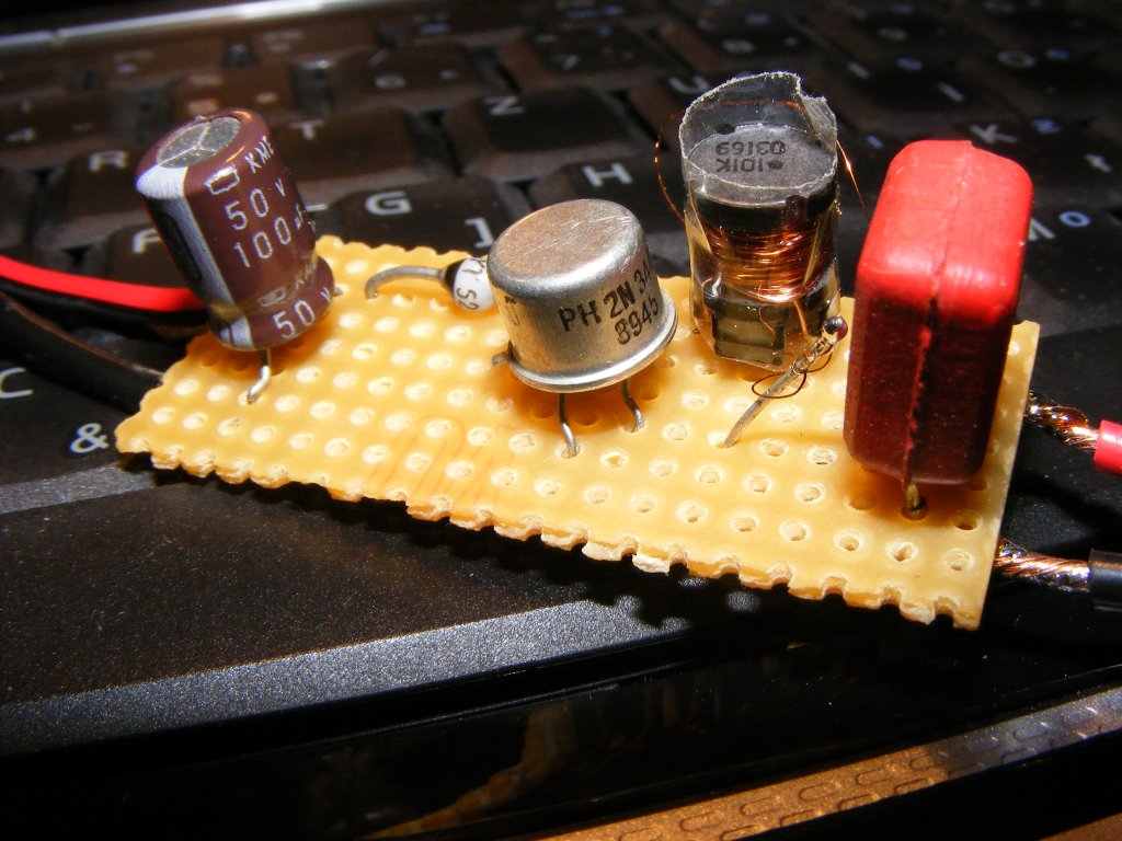 Először csak összedrótozva, de az első mérés után rögtön egy pici próbanyákra, mert ugyebár nem póknak születtem én se. 15mA terhelésnél 7,2-8 Voltot adott, terhelés nélkül 40 Volt a kimenő feszültsége. 1,3Voltos cerkaelemről. További tesztek, talán később. A képen látható gyári induktivitásra kb.: 10 menet drót került pluszba a tranziztor bázisához. Szerintem ígéretes.