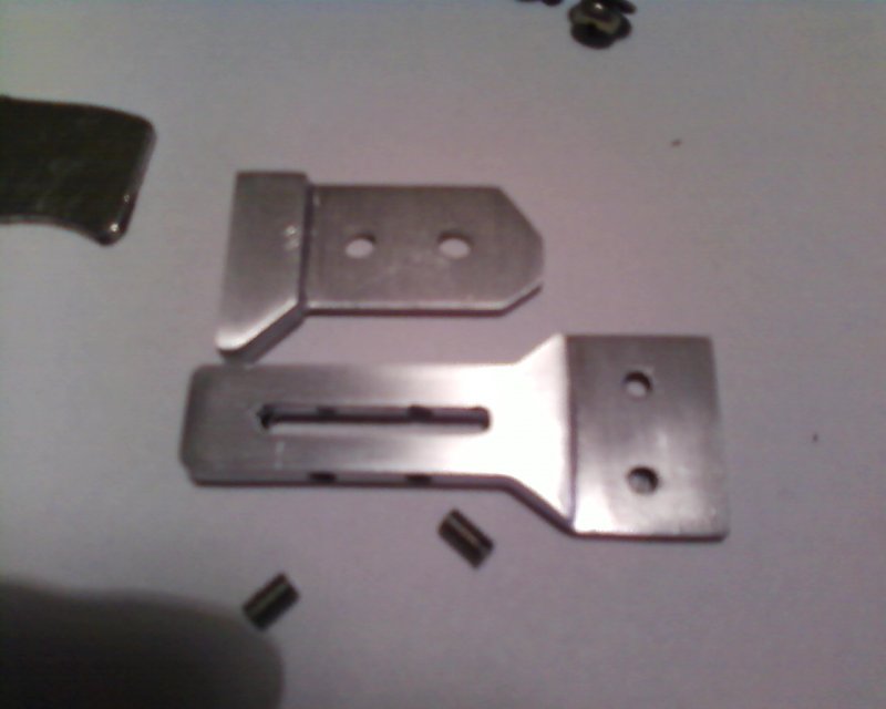 A gyári lemezen nem láttam feltüntetve milyen messze vannak egymástól a furatok alul de szerintem az is 15mm mint felül! Ezeket a gyári rugólemezről néztem ki! A másik a gyári lemez mozgó hossza jelentősen nagyobb mint a mienk mekkora legyen miben kell eltérni a méretektől? A rugó bereszelését felül is merőlegesen kéne szerintem megoldani így jobban tartaná az oldalát is! Valami kitöltő anyag felül sem ártana de a nyák túl vastag oda! A bereszeléseket vékony Stihl reszelővel nagyon gyorsan pontosan lehet végezni!