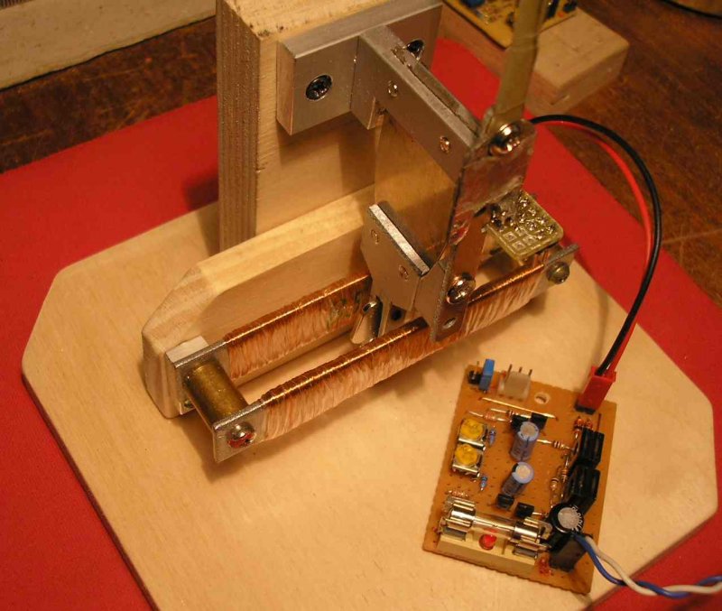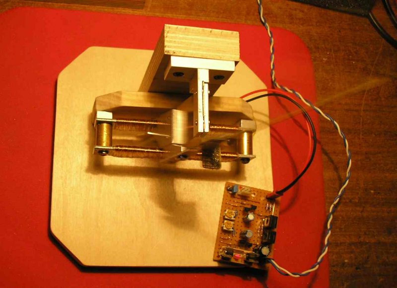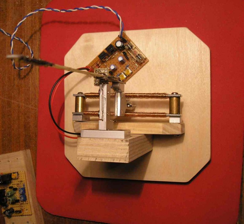 Az alap beállítása a mechanika felépitésének készen van. Ezzel teszteltem a kar hosszát különböző méretekkel. 175-185mm hoszznál van egyensúlyban a mágneskar és a kijelzőkar, jól lehet szabályozni a plusz súly állításával, de éppen oda a helyére akarom rakni majd a kis mágnest, mert ott lesz a legjobb, legérzékenyebb helyen. (Ennél jobb helyet nem is lehetne találni a Hall helyzetének és a mágnes helyének). Ezzel lesz majd az egyensúly is beállítva. Néhány felvétel a már elinditott alap mechanikáról. Sziasztok.