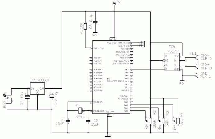 Az a kapcsolás, amit DjGeorge feltett lehet, h jó, csak az a baj, h nincs meg a PIC-be égetendő program. Esetleg ez segíthet valamit: http://www.lighting-solutions.de/products/LPR2DMX/index.html üdv, Szetty