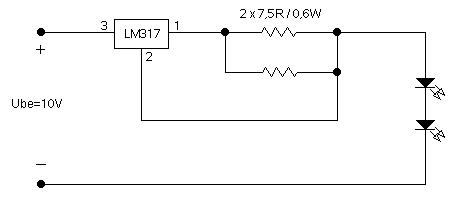 És a LED-eket sokkal jobban védi egy ellenállás mint egy félvezető, ami bármikor zárlatos lehet... Tehát észszerű magyarázat még mindig nincs két LM317 alkalmazására.