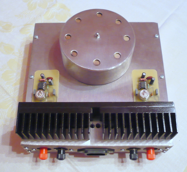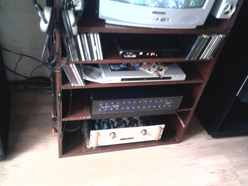 A yaxley -katogás és mellette végtelenítve van ( azbizony már sehogy nemtud megakadni) -hogy a 4-sztereó jel-bemenetközül gondnélkül lehessen választani, nyomatékdolgot a fúró áttétele megoldja viszont hogy nelegyen nagysebességű az átkapcsolási-fordulat erre egy (volt és amper) szabályozható tápot szereltem neki melyel kellemesen pillanatok alatt átáll (akár oda-vissza) a másik sztereó bemenetre - és persze nem durván kapcsol (-igaz a hangerőt ilyenkor szigorúan lekell tekerni ! ) A yaxley álapotát az erősítő előlapjánlévő digitális-kijelzőn lehet leolvasni, az adott képen jelenleg "SA" -felirat (satelit-sztereó bemeneten van) "szembevilágító kékledes kivezérlés jelző" - HUH ! Nos anyira azért nem világítanak, azok az SMD-ledek ugyanis a ledpanel előtt, amely az erősítő előlapját is képező "sötétített" üveg van és az sokat visszafog a ledek fényéből -de ha nagyon téma lenne szerelhetek a távvezérlőre egy fényerőszabályzó potit is (amely a kivezérlésjelző áramkörökben a ledek közös negatívját szabályozza-persze egy segédáramkörrel) A távvezérlőn azok a potik hangerő+balansz+mély+magas (LM1036 -Ic -vel ) szerelve (persze az előfok áramköre az erősítőben van a távvezérlőben csak a potik+a kapcsolók vannak) A többi-kapcsolók az erősítő áramtalanítója (230V), a yaxley-vezérlés, a szoba villany, és a Tv szekrénysor áramtalanítására is van rajta 1-kapcsoló (hogy neszívják az áramot mikor nemhaszálom a teknikát) persze ez az egéssz rendezettenvan szerelve nem össze-vissza