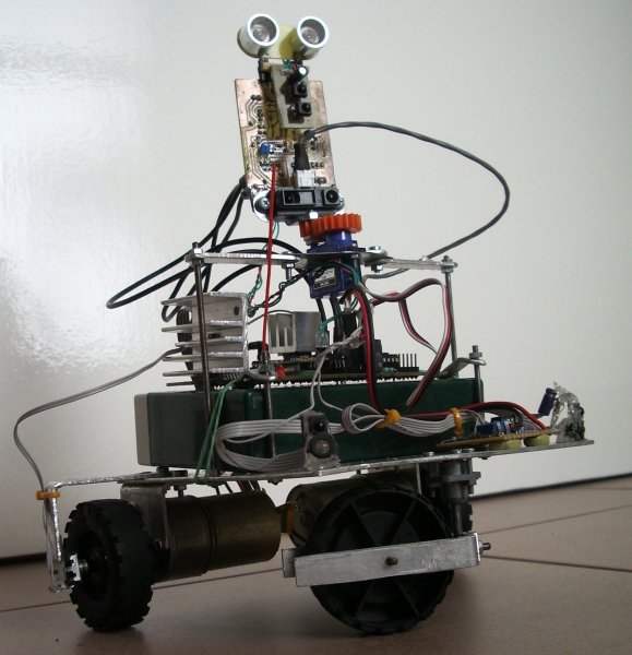 Közben én is tuningolom a régen elkezdett robotomat, kapott egy rádiómodult, házi készítésű ultrahangos távolságszenzort, a jól bevált Sharp infrás távszenzort, működik az odometria, a mérések eredményeit a számítógépen ábrázolja (mellékelt képen egy sarok), azon pedig most dolgozom, hogy 2 jeladóhoz képest meghatározza a helyzetét, és így akár egy szobát feltérképezzen.