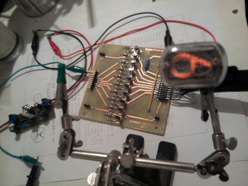 Én pic kontrollerrel már próbáltam. Miért ne menne Propeller chippel? A nagyfeszültségű oldalon az ellenállások legalább 1W -osak legyenek a feszültség terhelés miatt, és a nyomtatás is legyen szellős (2 db egymástól 1 raszterre levó forrpont között ne menjen át jelvezeték, de lehet még szellősebb is)... Az lenne a legjobb, ha az alacsony feszültségű és az anódfeszültségű rész között egy földvezeték menne el, a vezérlés ilyen 1W -os ellenállásokkal menne át a földvezeték fölött.