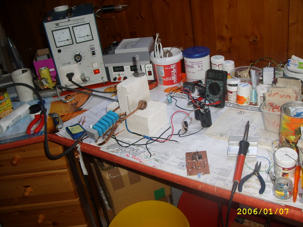 Én is építgetem a saját kemencémet így augusztus közepén, ami leginkább a pimi9 féle kapcsolásra hasonlít: http://spark2.uw.hu/ind_fmin1.html Csak én hegesztő invertert használok DC tápként. Ez saját találmány. Én 50 kHz-en 47 nF-os kondikat használok, alig érezhető a melegedésük. Előbb végig akartam olvasni ezt a fórumot, de amikor láttam, hogy kerestek grafit tégelyt, gondoltam megírom a címet: Mars Hungária Kft. http://www.marshungaria.hu/ Budapest, VIII. ker. Hős u. 1/A alatt a Stadionok metrómegálló közelében. 2 éve voltam náluk, akkor a legkisebb, kb 5 cm^3-is tégely került 2400 Ft-ba. A fél életem ráment az internetezésre, de megvannak az ilyen címek. Aluoxid tégelyt meg a Nefelejcs utca meletti utcában készítenek, 94 % aluoxid, 6 % SiC. Ott is 2 éve jártam utoljára, talán még működnek. 2 éve a mikrosütőben akartam fémet olvasztani, mert a grafit tégely jól melegszik benne, de ez az aluoxid tégely is, a 6 % SiC tartalma miatt, csak nem kaptam sehol 99,6 %-os aluoxid vattát, amivel ki szokták bélelni a mikrosütőt, hogy elszigetelje hő szempontjából a tégelyt a mikrosütő hőre érzékeny részeitől. Amúgy a homok, az üveg és így a samott is jól melegszik a mikróban. Szóval én ilyen aluoxid vattát keresek, de jó a habsamott tégla is. Abból is csak 67 %-ost tudtam szerezni, kisérletképpen megvettem, de a mikróba nem vált be, elnyeli az energiát.