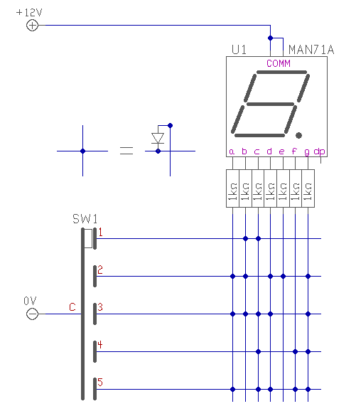 Ez a kapcsolás, egy BCD kódolású kapcsolóhoz készült. Ha neked Jaxley kapcsolód van, az decimális kódolásnak felel meg. De ugyan úgy átalakítható diódákkal. Kevesebb dióda, több ellenállás + IC. (Természetesen ha több állás is van az is könnyedén megvalósítható.) üdv! proli007