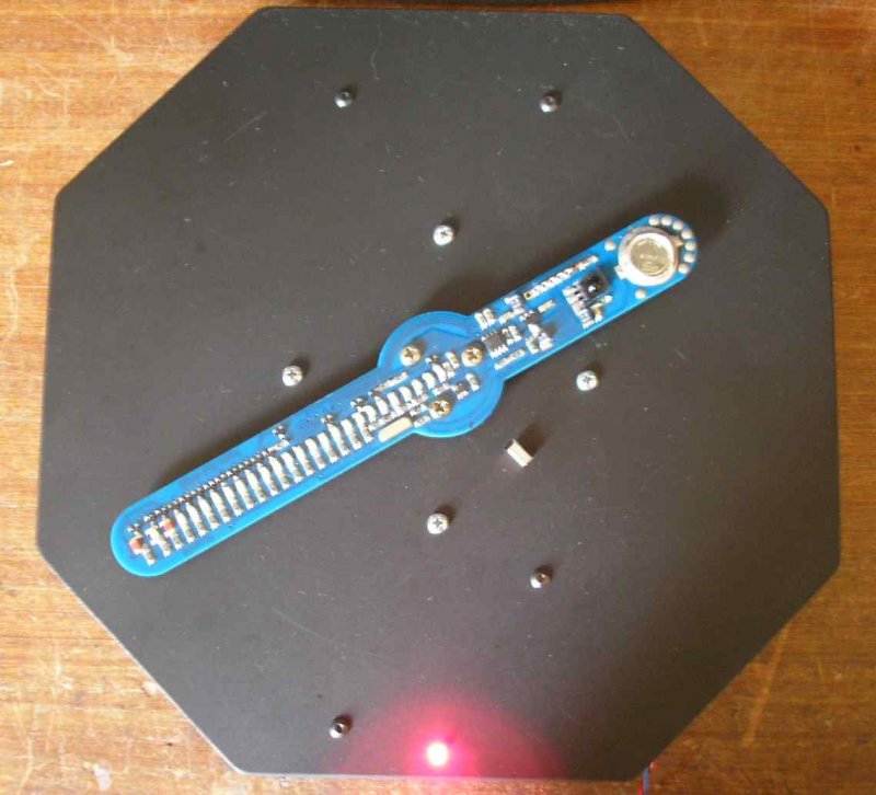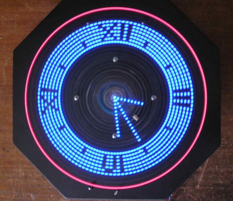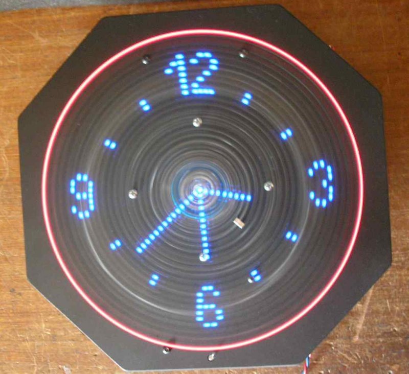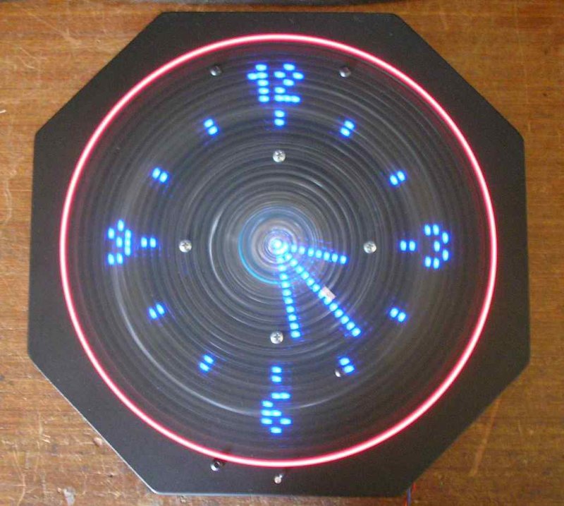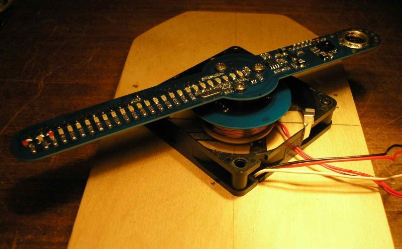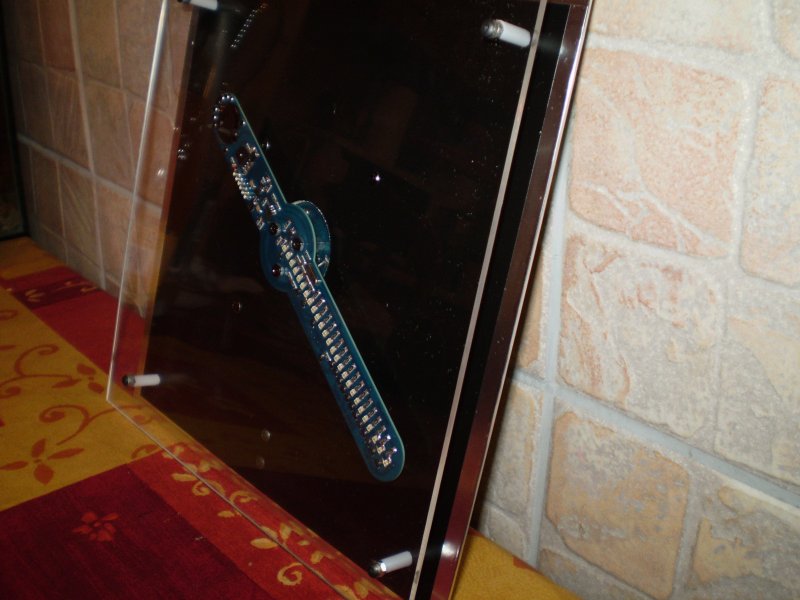 Ügyes kis eszköz az mindettől függetlenül, amilyeneket látni lehet a neten is néhány helyen. Még egy SMD f886 propellert kell építenem, mert ez annyira megtetszett itt a családnak, hogy nem is hagynak békén addig. Ahogy felraktam a "bemutató" falamra, máris nagy érdeklődést váltott ki. Különösen az analóg működés lehetőségeivel keltett fel komoly érdeklődést, így biztosan nem úszom meg az újraépítést. Hp41C igazán komoly munkát végzett ezekkel a speciális kijelzések megvalósításával. Egy kép amikor a propeller szinte áll, és egy kis videó az analóg óra néhány beállításáról.