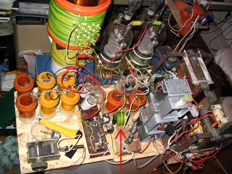 Ennél a tekercsnél nem sokat lehet állítgatni a csatolást a tekercs betolásával. Próbáltam, de nem az igazi. Ugyanis ha a bakelitlaphoz képest felemeltem a szekundert, akkor volt, hogy nem indult be a rezgés. De nekem nagyobb az átmérő-különbség 1 centivel. Próbálgass. A primeren a karima az eredeti gyártásilag ott levő kidudorodás, eredetileg ebbe tették a szigetelő gumigyűrűt. Amúgy 160-as csatornacső. A két összefogott vasra annyit tekertem, amennyi elfért a H szárai között. Olyan saccperkábé szabvány szerint ![]() A mellékelt képen nyíl jelzi. Hirtelen ezt találtam, de ha nagyon nem látszik, hogy néz ki, akkor lefotózhatom. Amúgy jól látszik az egész miskulancia. A nyíltól jobbra a három összecsavarozott, kimustrált magnetron látható. Masszív diódák ![]() Az előző képen látható kondikat már nem használom ehhez egy durr elég volt. Inkább a jóval strapabíróbb mikrós kondikat kapcsoltam sorba, meg nagyfrekis csőkondikat használok. Azok rádióadókba valók, pont ilyen üzemre tervezték őket. A "villanydrót" az az, ami. Egyszálas, merev, 1,5mm-es, PVC szigeteléű drót, amit a villanyszerelésben használnak. Azért ez, mert merev és tartja a formát, meg ezt vettem Ebből van a primer is és a vcs tekercs is.Üdv!