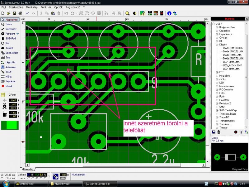 Közben rájöttem! A makrókat elemekre kell bontani és kijelölni azt a lábakat vagy vonalakat ami köré nem kell telefólia és szépen növelve a telefólia távolságát ki lehet szedni a felesleget. Eléggé babra munka, de megéri, mint maratás után kapargatni meg anyázni!