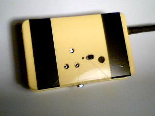 Elkészült a dobozolás. Köszi az ötleteket, végül találtam itthon egy sárga szappantartót. Így már rendesen működik az adó, nem állítódik el. A fekete szigszalag csak "díszítés", az oldalsó csavarok tartják egyben. Csak a fúrásnál egy kicsit karcos lett a doboz eleje, lehet, hogy fogok rá csinálni valami nyomtatott előlapot. Szerintetek milyen lett?