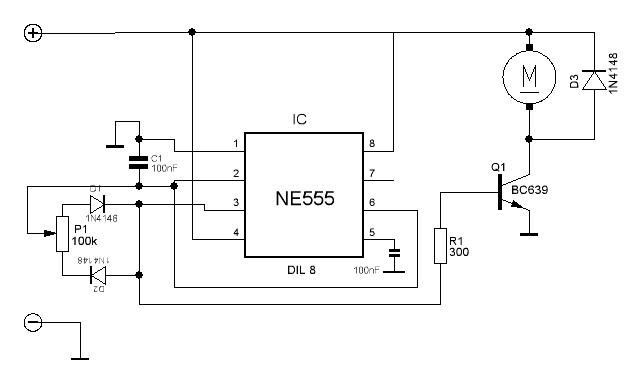 Én az első oldalon linkelt kapcsolást csináltam meg (555-ös icvel), és faszául működik. Annyi hogy kell egy potit 100-25K-ig (144-576Hz -es pwm jel poti mérettől függően), és állítható is lesz a lassítás mértéke. Csatolom a végleges kapcsolási rajzom. Rossz alaplapon számtalan jól hazsnálható fetet találsz, amire ki lehet cserélni a kapcsolásban szereplőket, diódából és fetből a te esetedben elég lesz 1-2A-es méretű, és persze az én kapcsolásomhoz képest csak 1db kell mindkettőből, és bc 337-327 se kell, az ic 7-es lába mehet direktbe a fet gate-jére. Az egészből egy kis 2x2cm-es elektronika lesz, és később bármire használhatod, mint mondjuk pc-s ventik fordulatszabályozására...