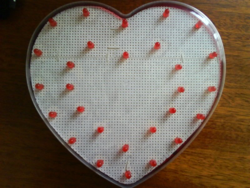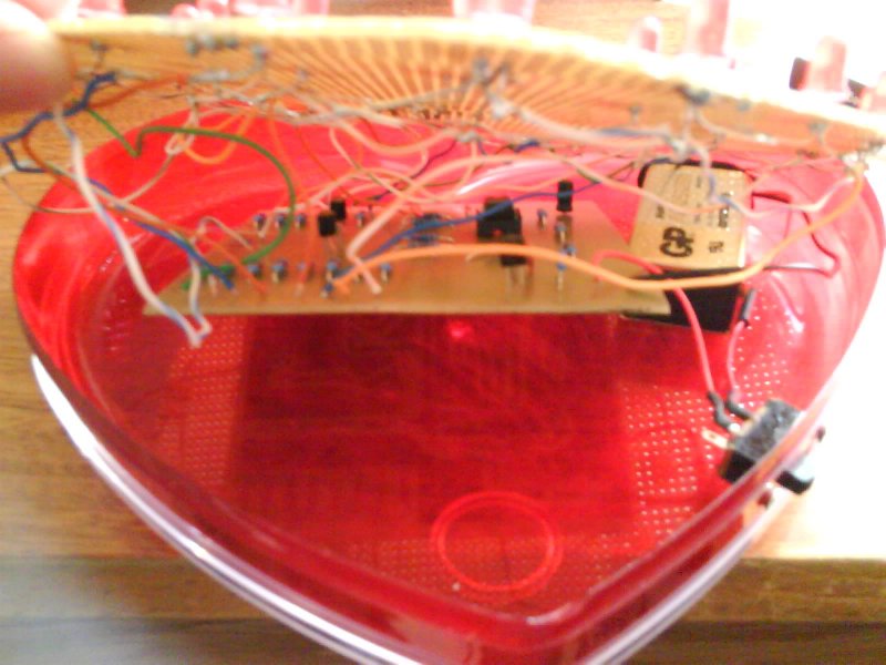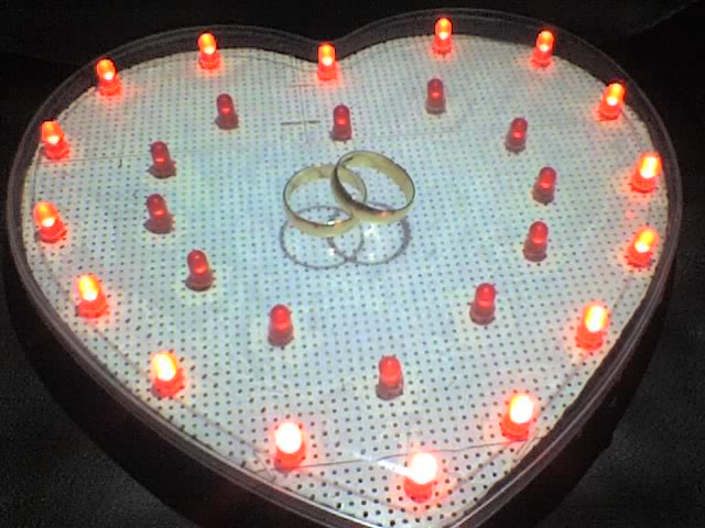 Elkészült a szív, ( Valentin napra már oda is adtam az asszonynak ) nagyon szuperül működik, annyi hiba van a dologban, hogy a PNP tranzisztor nem zár le teljesen, amikor az 555 kimenete alacsony szinten van, így a belső szív ledjei halványan világítanak, de viszont sötétben nézve így még sokkal frankóbb a látvány Kapcsolási rajz, nyákterv (csak vezérlőpanel, a ledek külön vannak az előlapon) és néhány fotó a mellékletben