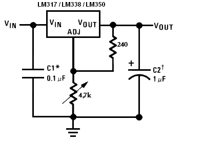 R2 4,7k-s poti helyett berakhatok 470k-st? És akkor az R1 240-es helyett is valamilyen mást? Azt már nem tudom milyet abban kérném segítségeteket. Ez érvényes erre a feszültség regulátorra. VOUT = 1.25V ( 1+R2/ R1 ) + IADJ R2