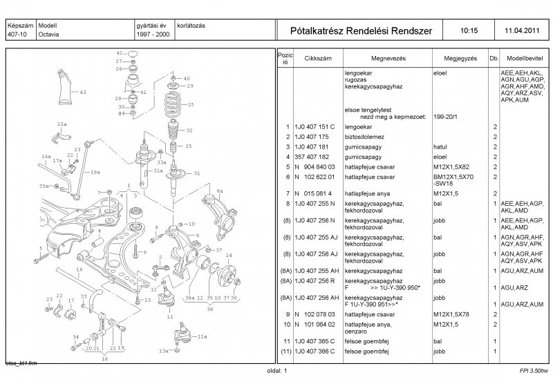 Először is azt szeretném megkérdezni, hogy oldottad meg az ajtózárban lévő mikrokapcsolót, mert sajna ugyanez a gondom, valamint a középső konzol világítását ha elmondanád nagyon megköszönném. (octavia AEE 1.6 benzin.) A motor nekem egy időben hasonlóakat produkált mint a tiéd. Folytószelep tisztítása, valamint a gyertyapipákon lévő fémlemez ledobálása megoldotta a problémát. Kb. két hónapi variálásba telt mire rájöttem mi a gond. (A gyertya fémborítása áthúzott.) Remélem tudtam segíteni. Első futóműhöz keresem a rajzot és felrakom.