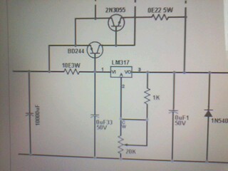 Na várjál, itt meg van patkolva egy-két tranzisztorral is a 317. Az IC-vel soros 10ohm-os ellenállást csökkentsd 1 ohm-ra, és úgy próbáld. Ha csak önmagában van az IC, akkor hogyan működik?