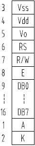 Nálad sztem az 1. az L-, a 2. az L+, a többiből meg 2-t levonva megkapod a 162F számait. Azért ellenőrizd le legalább a tápfeszek bekötését az adatlap szerint.